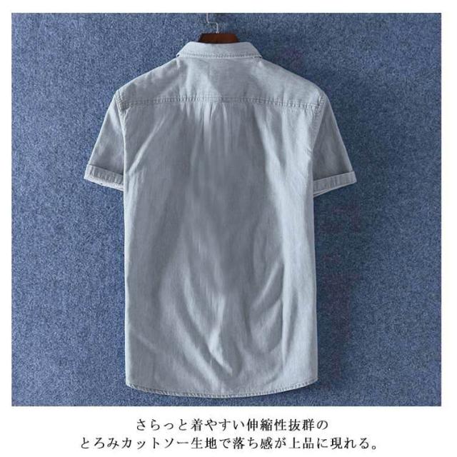 デニムシャツ 半袖 メンズ サマーシャツ ボタンシャツ カジュアルシャツ ノーカラー カットソー スリムシャツ 前開き 修身 男性用 細身 カッコイイ おしゃれ トップス 夏物