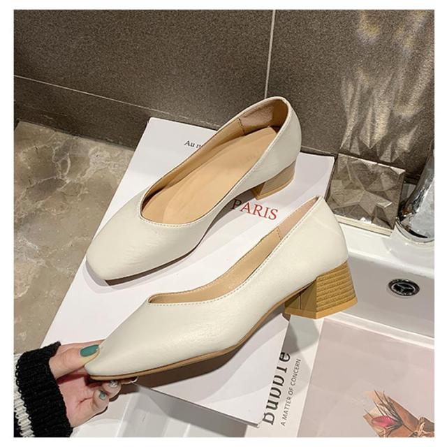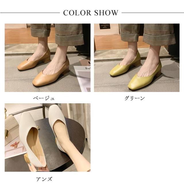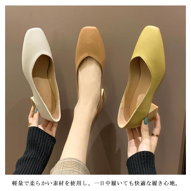 パンプス スクエアトゥ レディース 太めヒール レザーパンプス 美脚 走れる 歩きやすい PUパンプス 女性 靴 シンプル レトロ くつ おしゃれ OL 通勤 結婚式