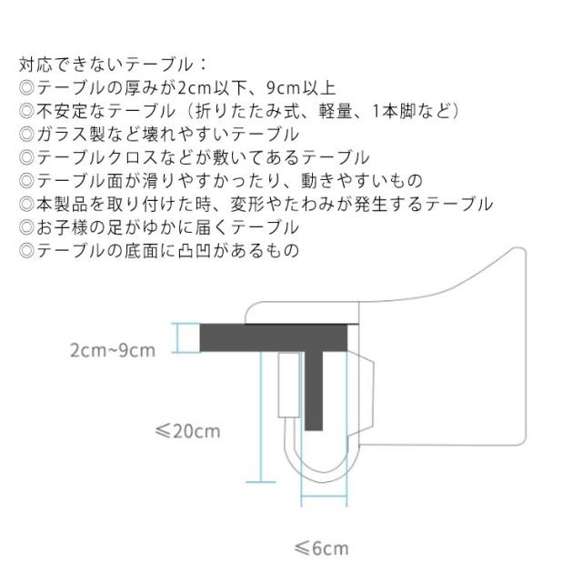 | 取り付け楽チン、携帯便利な子供テーブルチェア。 ご自宅はもちろん、レストラン、旅行中などいつでもお子さまと食卓を囲むことができるファストテーブルチェア。 折りたため、内蔵の収納袋で気軽に持ち運べるから、旅行や外出先でもごきげんな食事タイムを楽しめる。 耐荷重18KGで、5ヶ月から3歳まで活躍できる。 ほとんどのテーブルにお使いいただける優れもの。 シートは取り外しできるから、洗濯OKなので、いつでも清潔に◎ | |