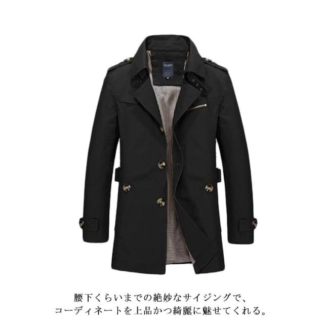 トレンチコート メンズ ミディアム丈 スプリングコート 大きいサイズ アウター スリム 綿 カジュアル ミリタリー ジャケット 春服 秋冬