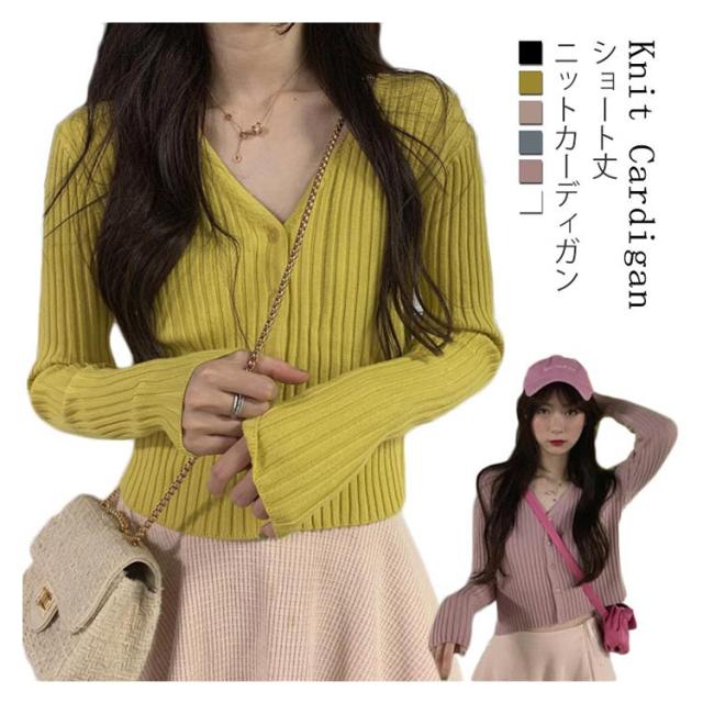 タイトフィット ニット カーディガン Vネック レディース 無地 ショート丈 カーディガン ニットカーディガン 通勤 オフィス 羽織り 長袖 uvカット レイヤード 着回し デイリー 羽織り 春夏