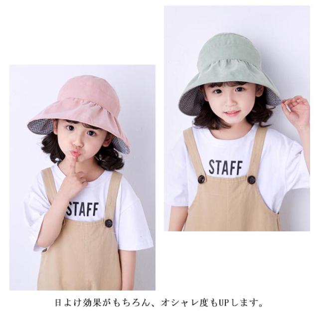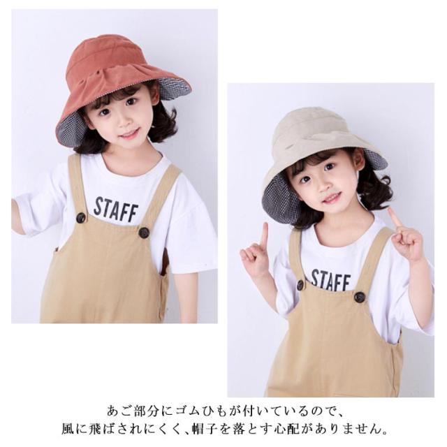 ベビー 帽子 キッズ ハット女の子 かわいいリボン つば広い UVcut 日よけ 紫外線対策紐付き サファリハット 変形ににくい 折りたたみ可キッズ帽子 可愛い 新作