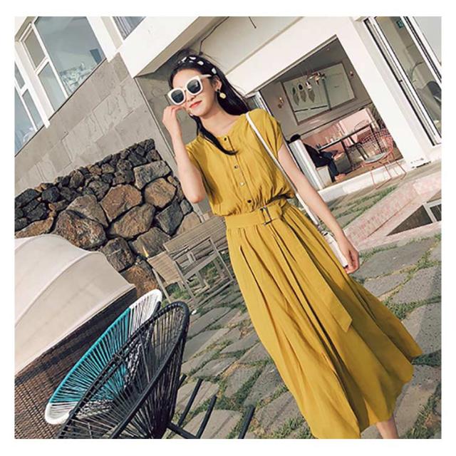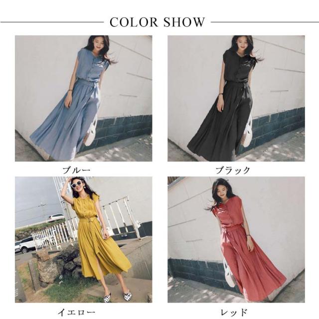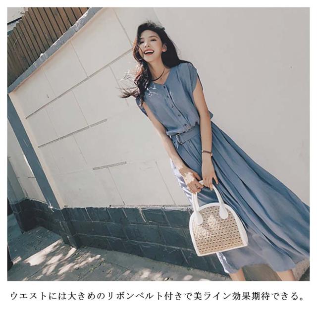全4色×4サイズ!ロングシャツワンピース ウエストベルト付き 夏ワンピース ワンピース 夏 シャツワンピース 半袖 ロング丈 膝下丈 シンプル 無地 ナチュラル 可愛い 春夏
