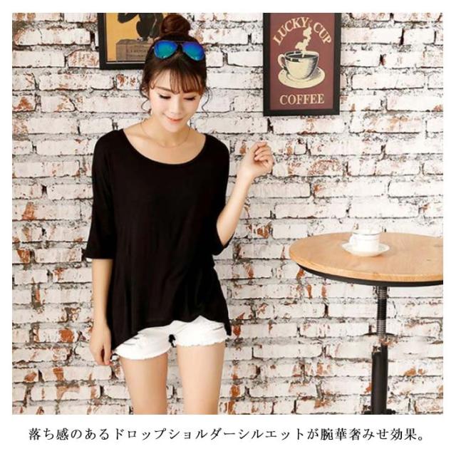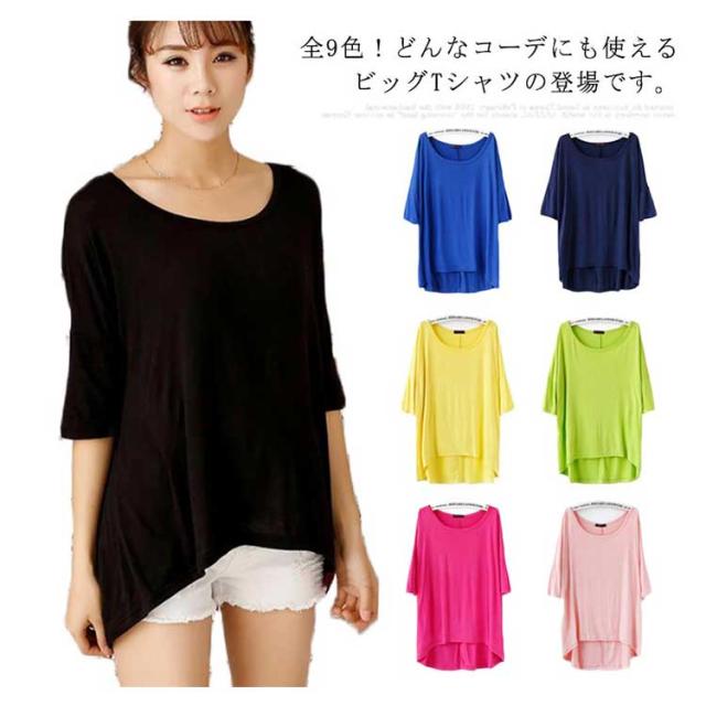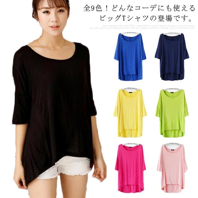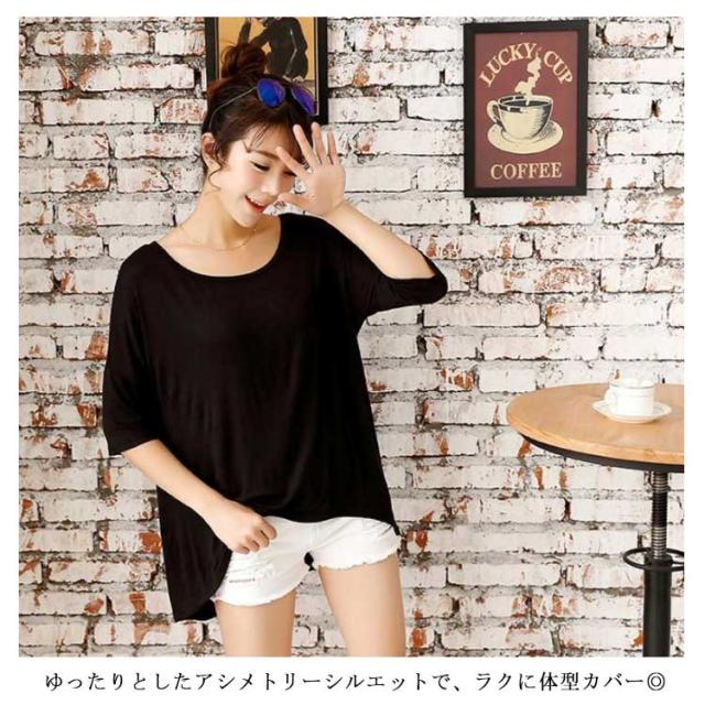全9色!tシャツ カットソー アシメトリー ビッグtシャツ ビッグシルエットtシャツ 半袖 無地 ドルマンスリーブ ゆったり 大きサイズ 夏服 体型カバー