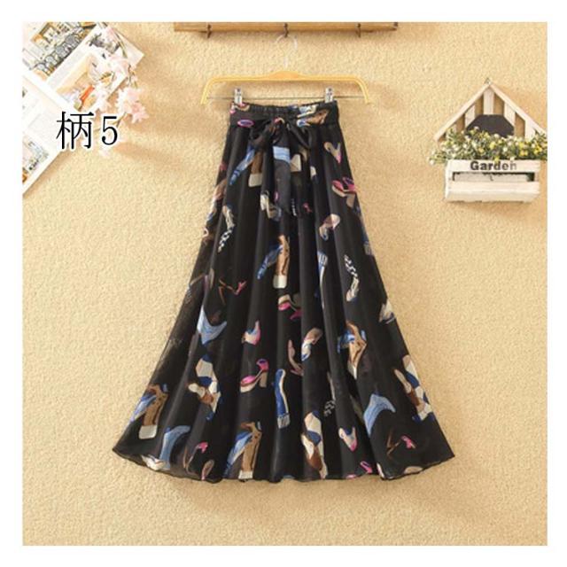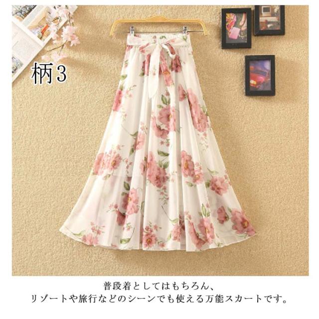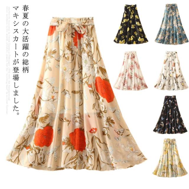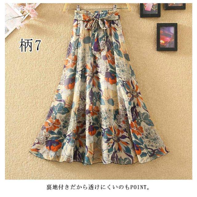 全8柄!花柄 ロングスカート スカート フレアスカート マキシスカート マキシ丈 ロング丈 aライン ウエストゴム シフォン 総柄 プリント リゾート 春 夏