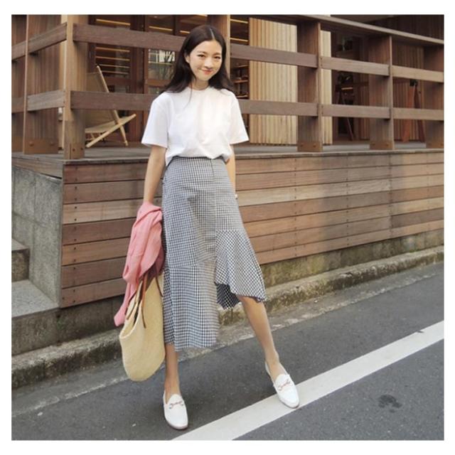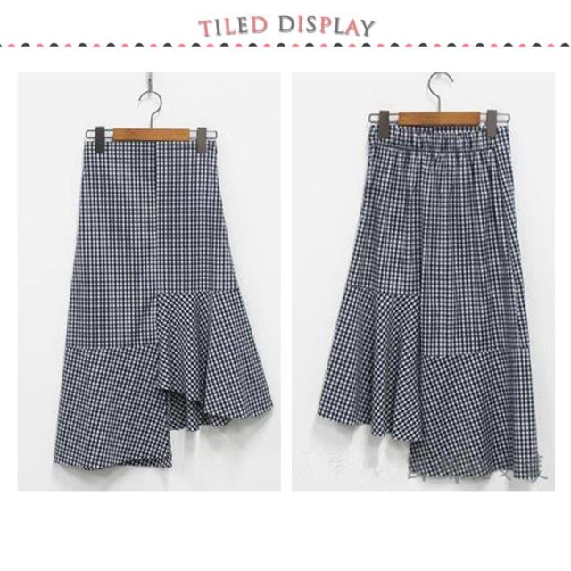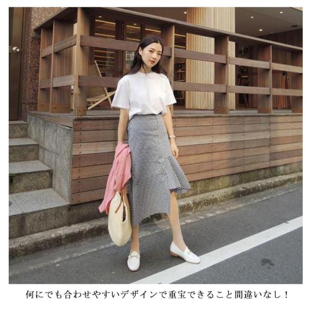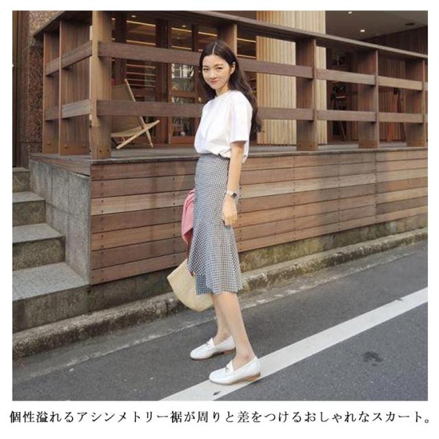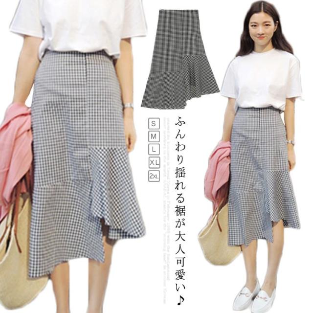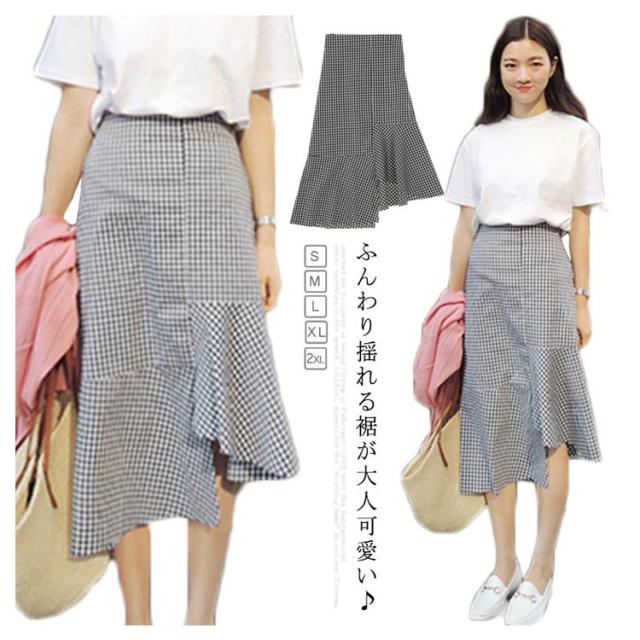 スカート マーメイドスカート チェック柄 ロングスカート 膝下 ウェストゴム ハイウェスト スカート お洒落 アシンメトリー 春夏 ミモレ丈 通学 通勤