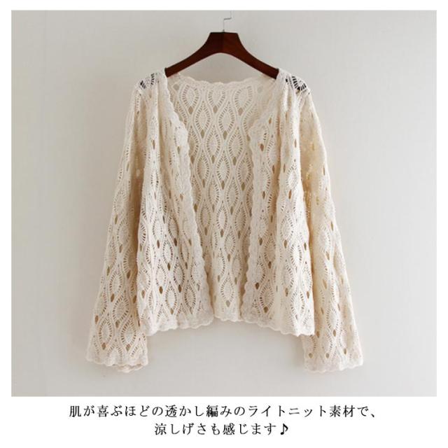 透け編みニットカーディガン ニットカーディガン サマーカーディガン コットンレース 夏 カーディガン 紫外線対策 日焼け防止 羽織 長袖 アウトドア 旅行 レジャー シンプル おしゃれ レディース