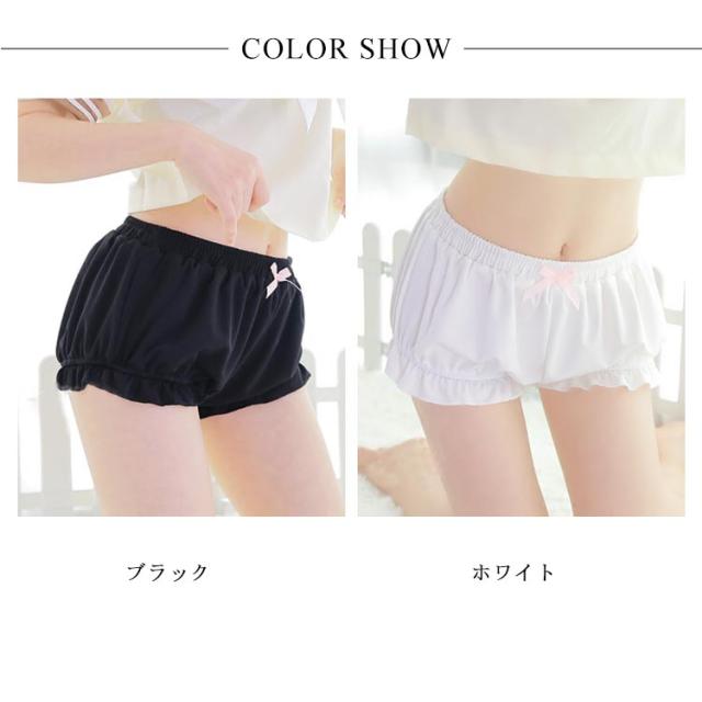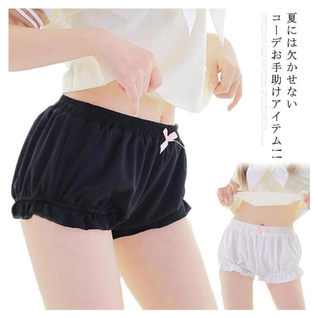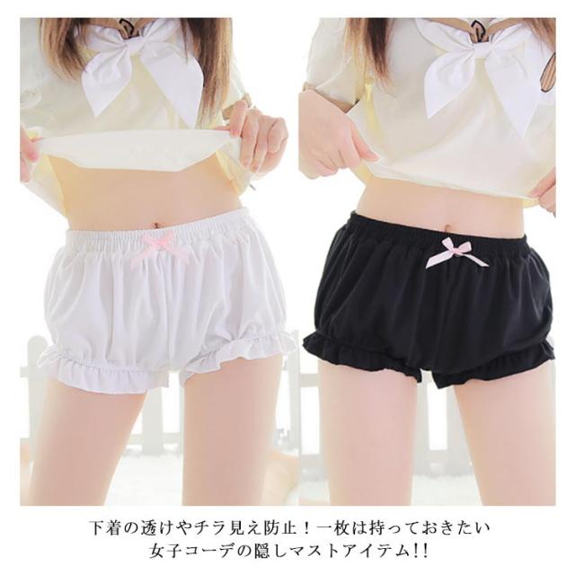 ペチコート レディース インナーパンツ ショーツ キュロットパンツ かぼちゃパンツ カボチャ ティアード ショートパンツ 3分丈 下着 ボトムス チラ見せ防止 可愛い ホワイト ブラック