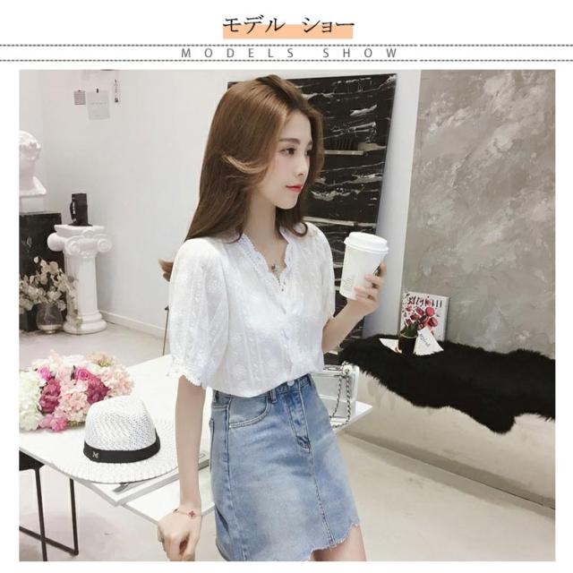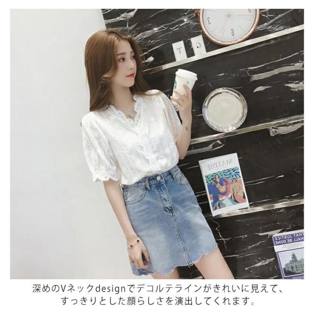 フラワーレースtシャツ レディース 半袖tシャツ 半袖ブラウス フラワー刺繍 レースブラウス 半袖 Vネック シンプル おしゃれ 白 春夏 夏