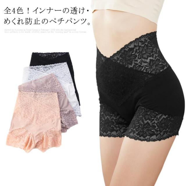 ペチパンツ レディース レース ペチコート ショートパンツ ハイウエスト レースショートパンツ ショーパン スカパン キュロット インナー 下着 シンプル おしゃれ フィット タイト