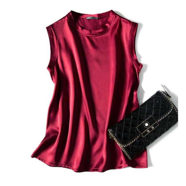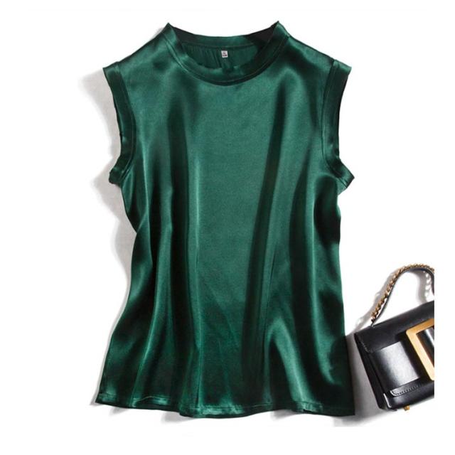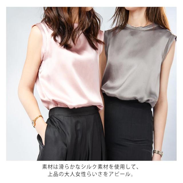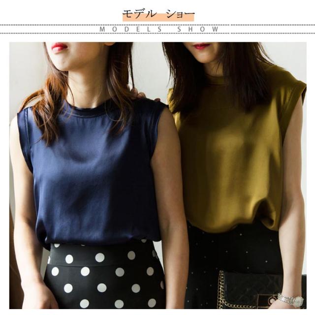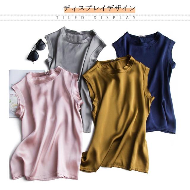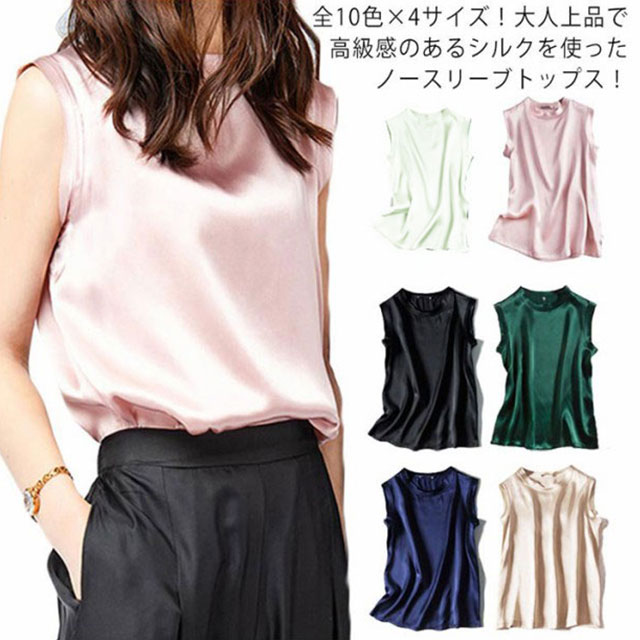 全10色×4サイズ!シルクtシャツ ノースリーブトップス レディース tシャツ ノースリーブ トップス シルク サテン 無地tシャツ 光沢感 夏服 夏物 大きサイズ おしゃれ 女性