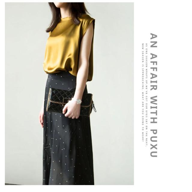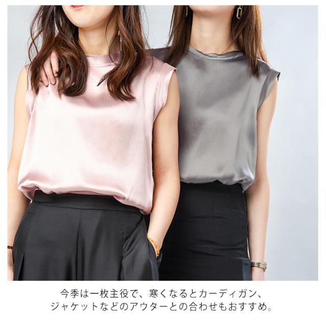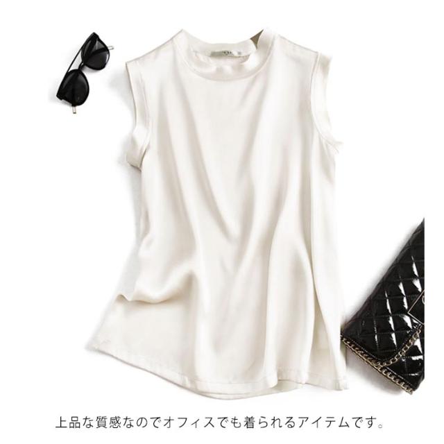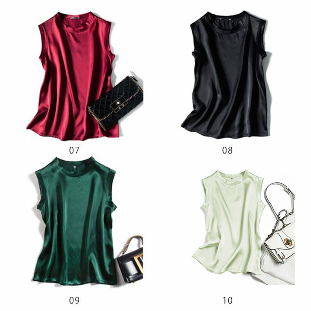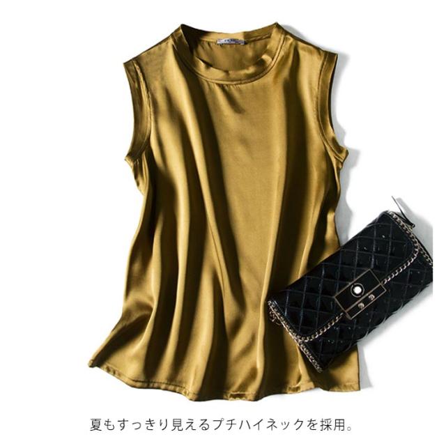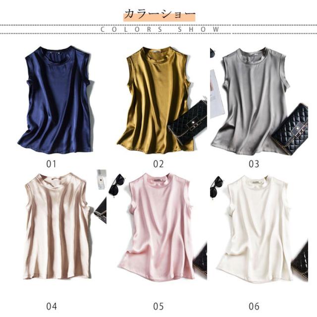| 全10色×4サイズ!大人上品で高級感のあるシルクを使ったノースリーブトップス! 夏もすっきり見えるプチハイネックを採用。 素材は滑らかなシルク素材を使用して、上品の大人女性らいさをアピール。 上品な質感なのでオフィスでも着られるアイテムです。 今季は一枚主役で、寒くなるとカーディガン、ジャケットなどのアウターとの合わせもおすすめ。 | |