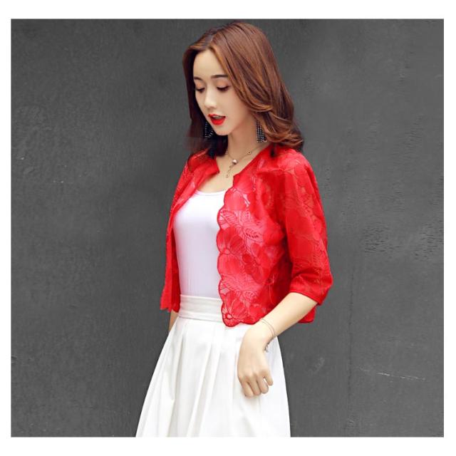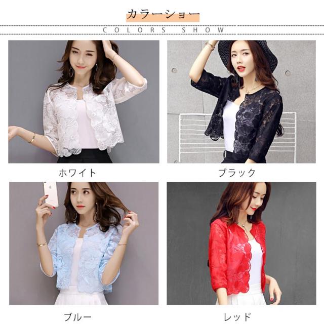 全4色×6サイズ!サマージャケット サマーカーディガン レディース ポレロ 花柄レース レースポレロ 5分袖 ショート丈 夏服 おしゃれ 可愛い
