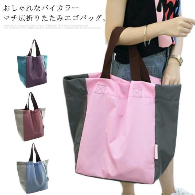 全10色 バイカラー エコバッグ コンビニエコバッグ ジレ袋 送料無料 マチ付き トートバッグ 肩掛け 折りたたみ バッグ ショッピングバッグ 大容量 コンパクトに収納 買い物バッグ 無地 母の日 ギフト