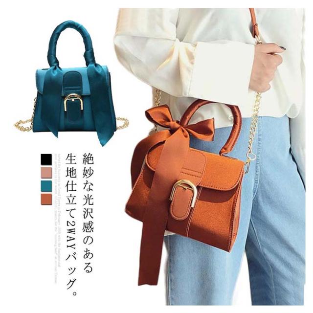 2WAY バッグ ハンドバッグ ショルダーバッグ レディース ポシェット 台形 バッグ 鞄 光沢 ベロア リボン チェーン スエード調バッグ おしゃれ 二次会 結婚式 フォーマル 通勤 小さめ かばん