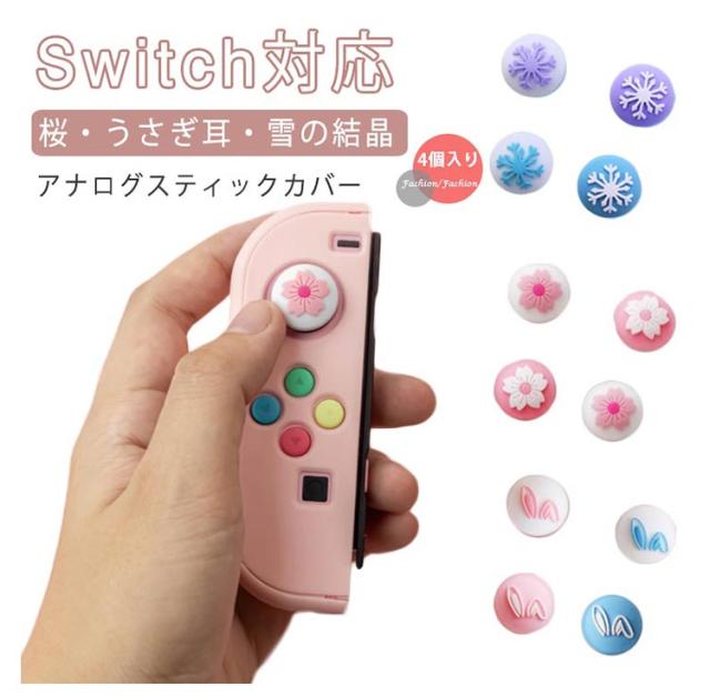 桜・うさぎ耳・雪の結晶 ジョイコンカバー ジョイスティックキャップ Nintendo Switch/Switch Lite対応 アナログスティックカバー 4個 スティックカバー スティックキャップ 親指 グリップキャップ ジョイスティックカバー 送料無料