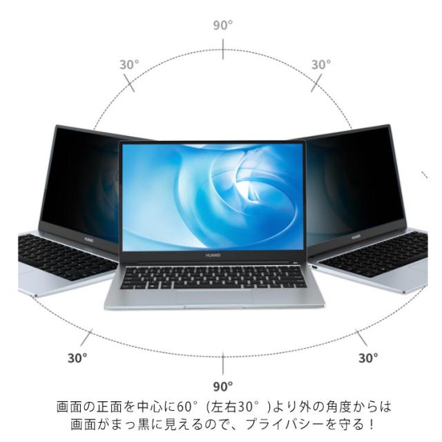 | サイズについての説明 | 対応機種:14インチ16:9(310mm*174mm) 。厚さ:0.37mm 表面硬度:3H 覗き見防止角度:60度(左右30度) |