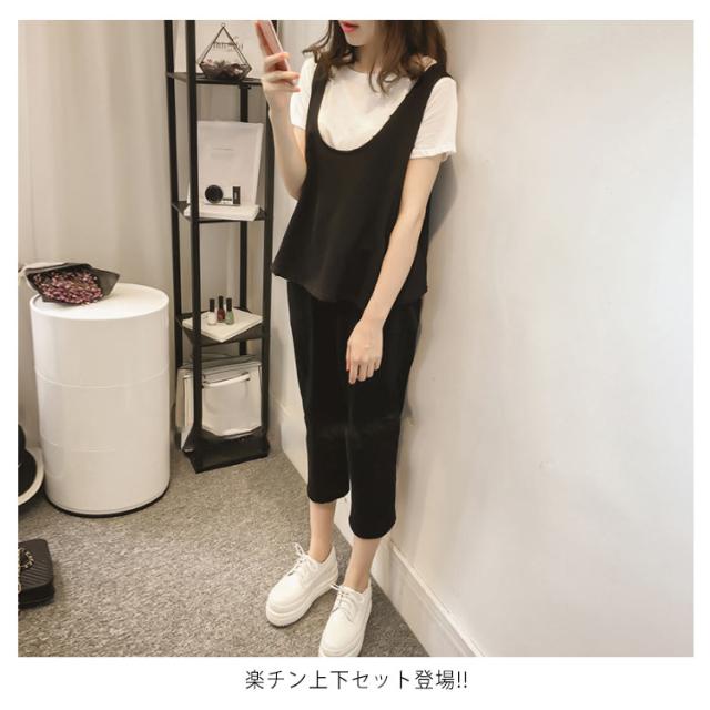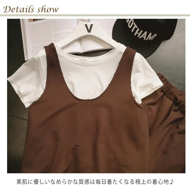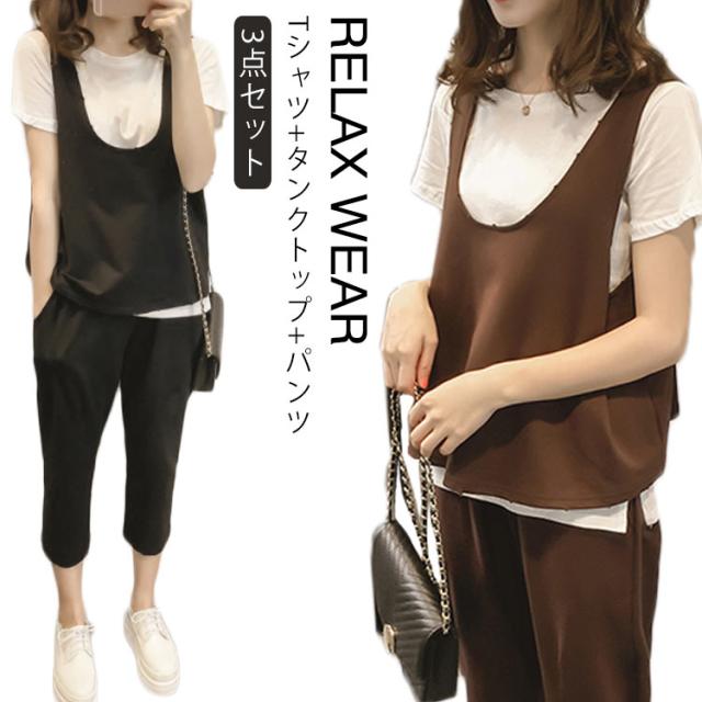 セットアップ パンツセットアップ 3点セット レディース 半袖 Tシャツ 7分丈 パンツ タンクトップ ベスト 部屋着 着痩せ 送料無料