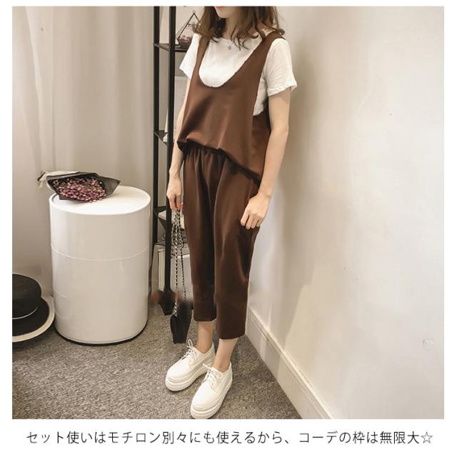 | 楽チン上下セット登場!! Tシャツ+タンクトップ+パンツの3点セット! セット使いはモチロン別々にも使えるから、コーデの枠は無限大☆ ちょっとしたお出かけにも、ルームウェアとしてもお洒落に決まるアイテムです。 | |