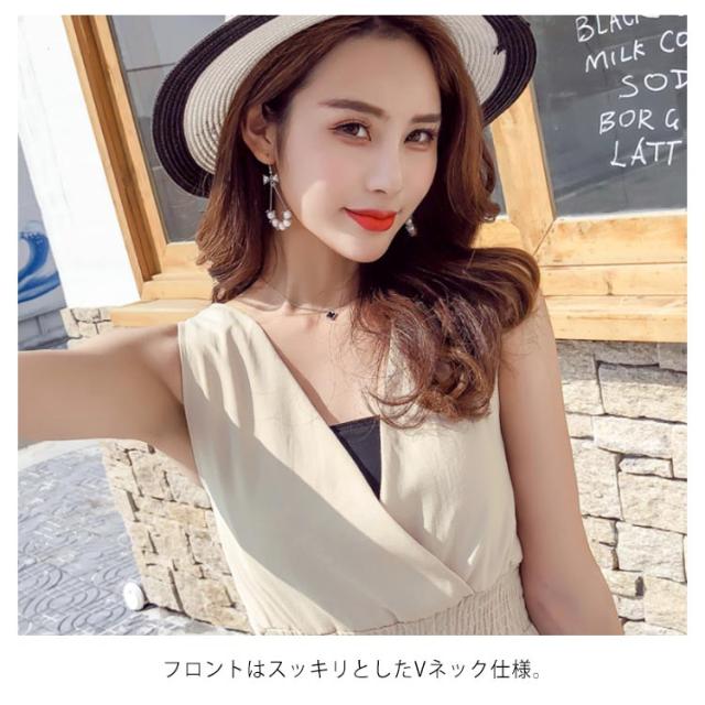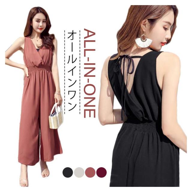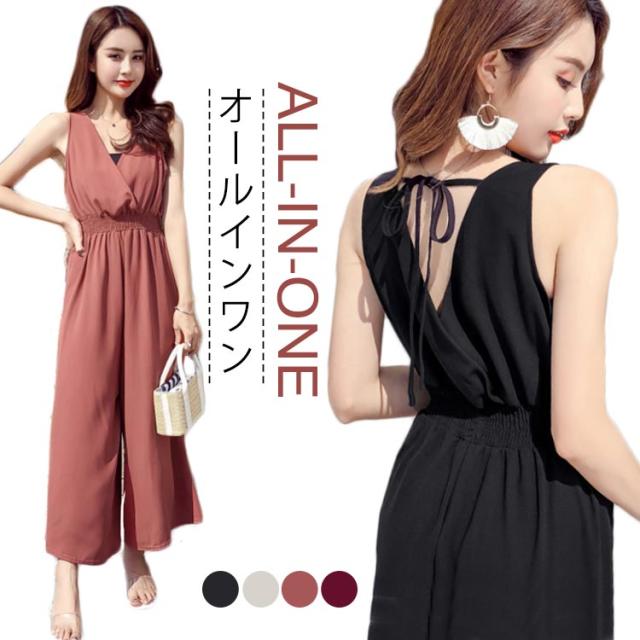 パンツドレス オールインワン ガウチョパンツ カシュクール サロペットパンツ オールインワン レディース サロペット オールインワン サロペットパンツ オールインワン オーバーオール ワイドパンツ ゆったり 着痩せ 送料無料