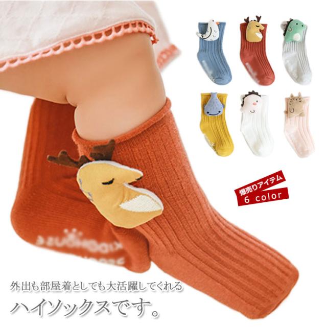 ベビー用 靴下 ハイソックス 赤ちゃん 靴下 ベビー ソックス 新生児 くつ下 コットン 動物柄 滑りにくい 綿混 部屋着 アウトドア 出産祝いプレゼント 可愛い 新作