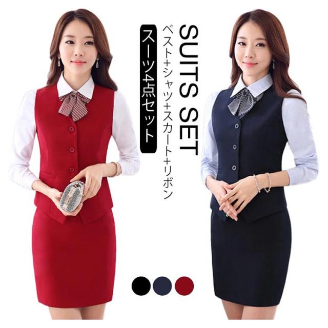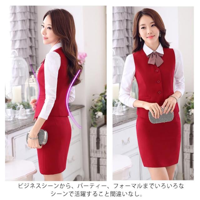 | 上品でスタイリッシュなスーツの4点セット! ベスト+シャツ+スカート+リボンの4点セットです。 細魅せ効果絶大★スリムラインが美シルエットをメイク! ビジネスシーンから、パーティー、フォーマルまでいろいろなシーンで活躍すること間違いなし。 | |