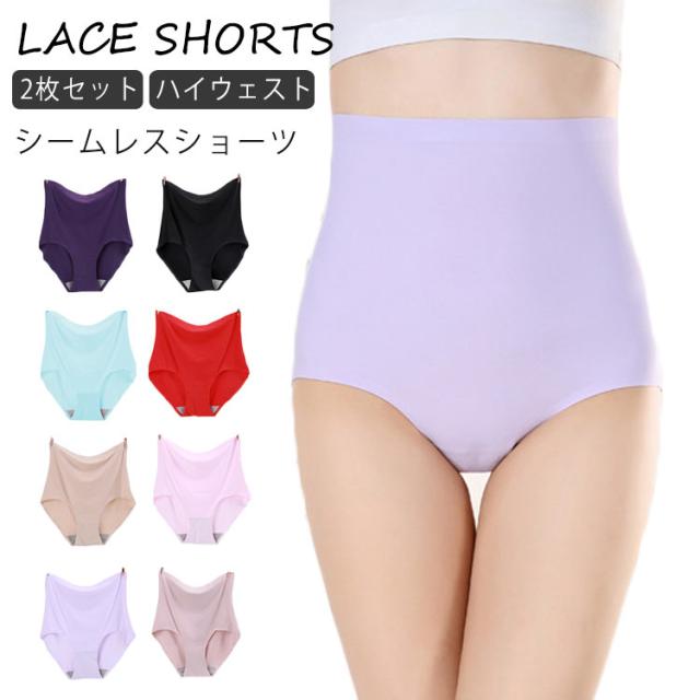 送料無料 シームレス ショーツ 2枚セット レディース 無縫製 ショーツ フルバック ショーツ ノーラインショーツ 下着 女性用下着 ハイウェスト ショーツ お腹引き締め 深履き インナー シームレスパンティー ストレスフリー 響かない ストレッチ