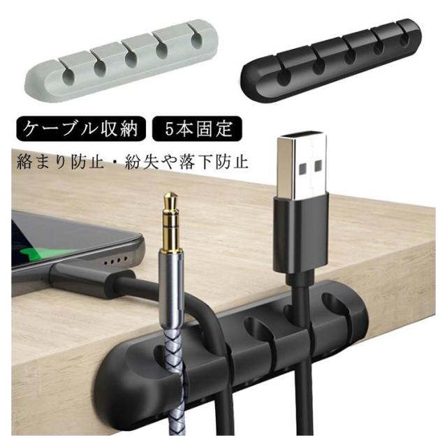 送料無料 ケーブル収納 5本固定 uSbケーブル テーブル 片づけ ケーブルホルダー シリコン製 ケーブルクリップ 5穴 ケーブル整理 両面テープ コード クリップ