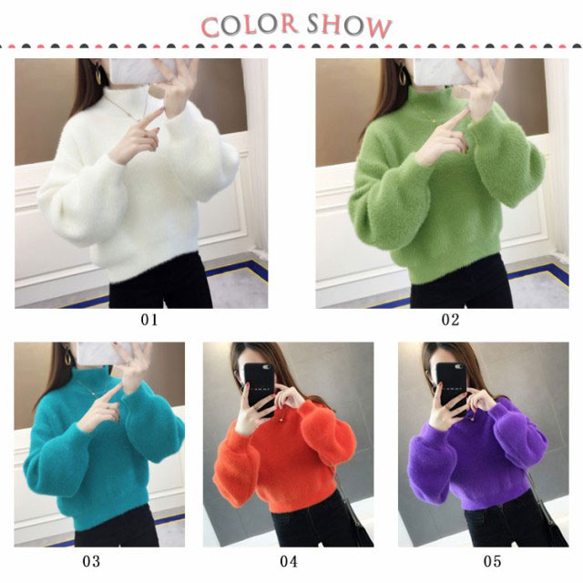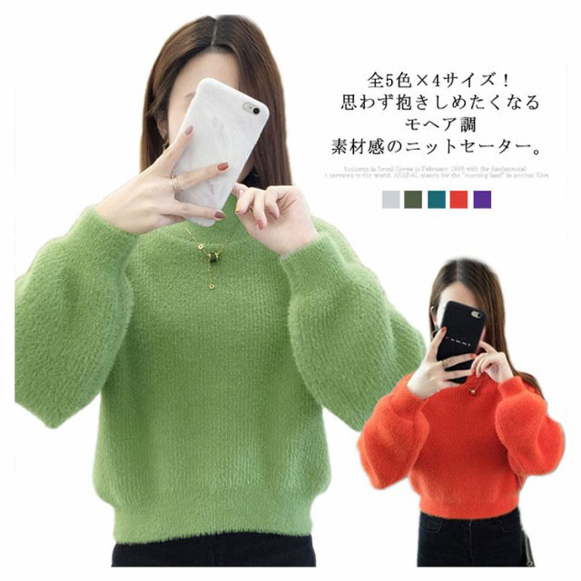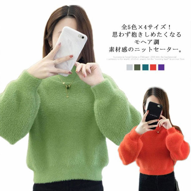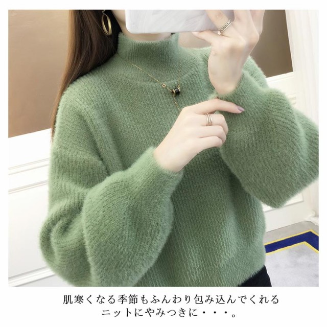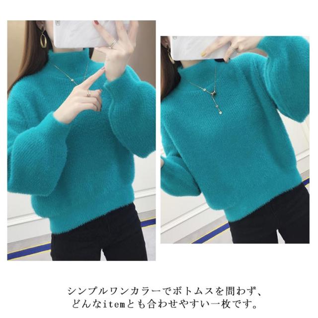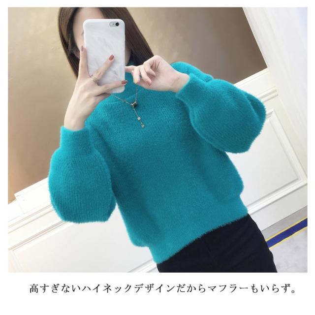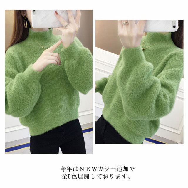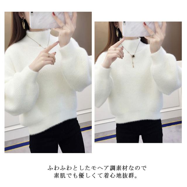 全6色×4サイズ!モヘアタッチ ニットセーター レディース ニットトップス ハイネック ニット セーター ハイネックニット 長袖 ふんわり かわいい 秋冬 冬物 冬服