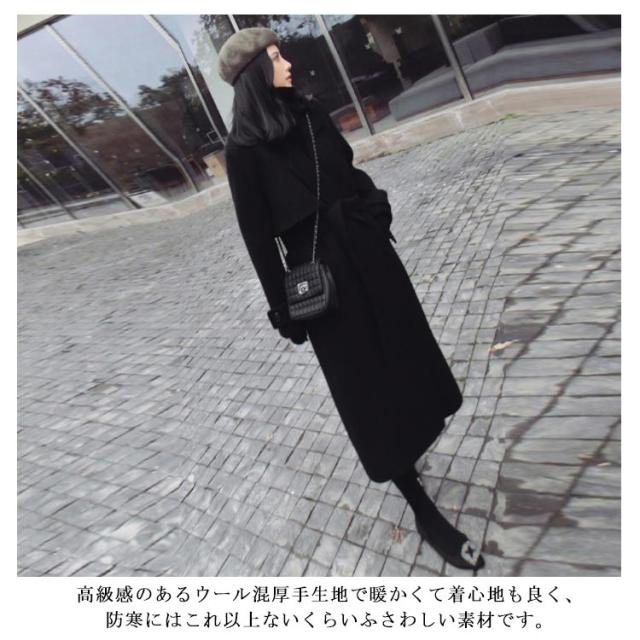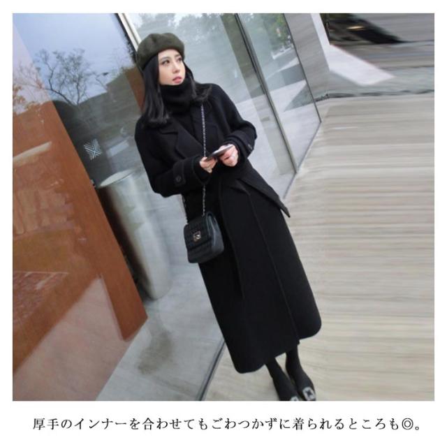 チェスターコート ロング丈 ロングチェスターコート レディース ロングコート ウール混 アウター コート チェスター ベルト付き 上品 高級感 ブラック 着痩せ 厚手 秋冬 冬物
