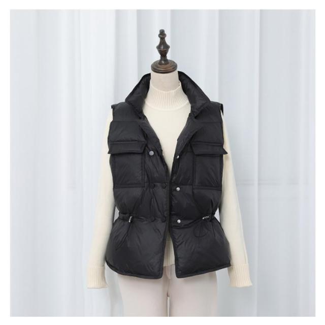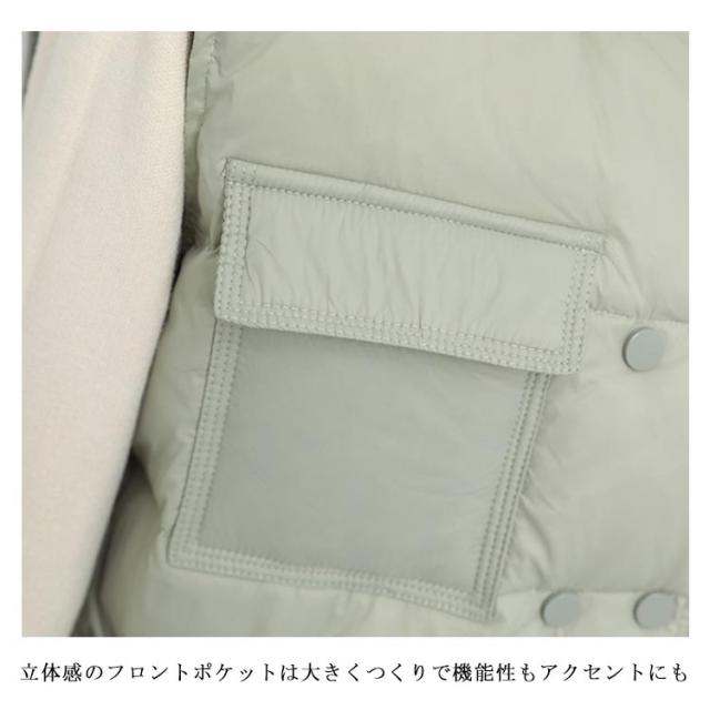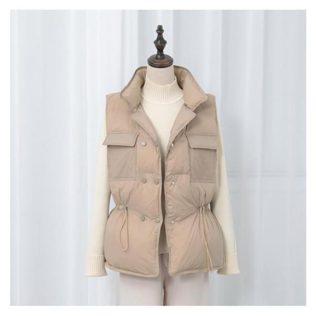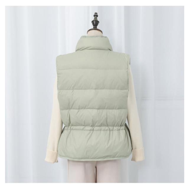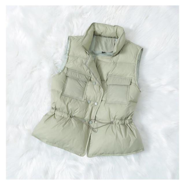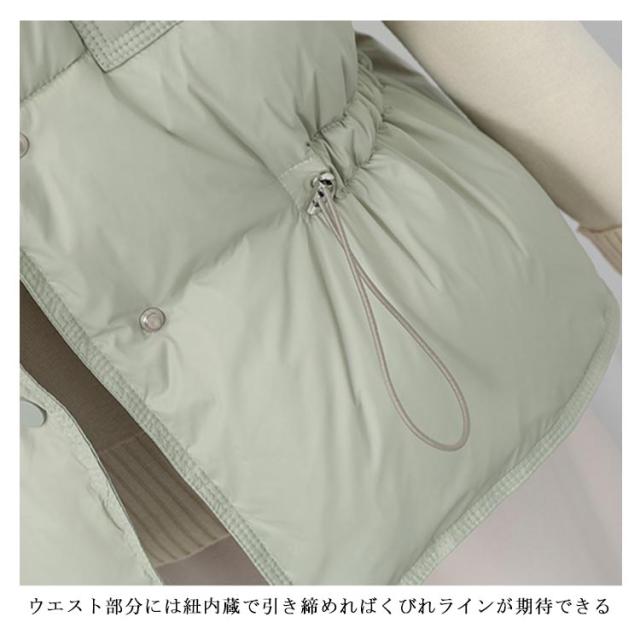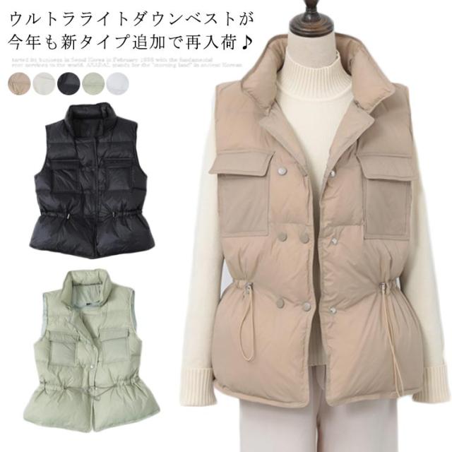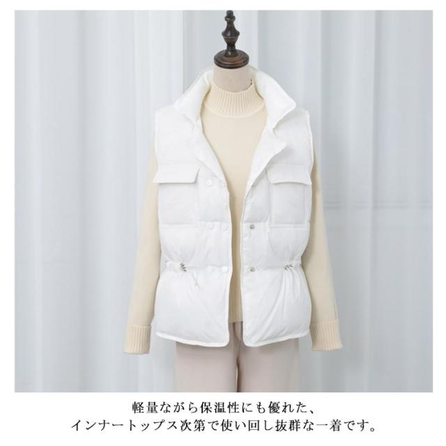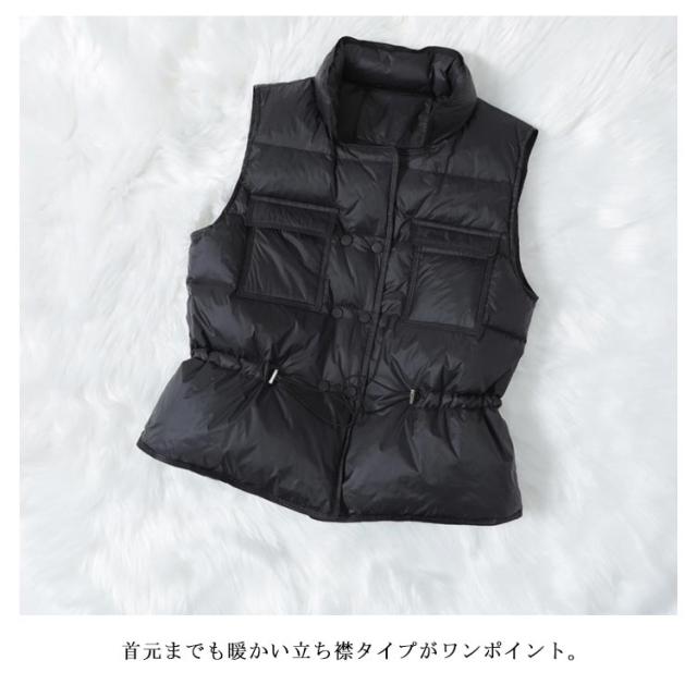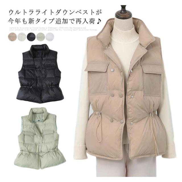 全5色!ダウンベスト ダウンジャケット ライトダウンベスト 袖なし 軽量 ダウン ベスト 立ち襟 ショート丈 立体ポケット 紐内蔵 秋冬 冬物 レディース