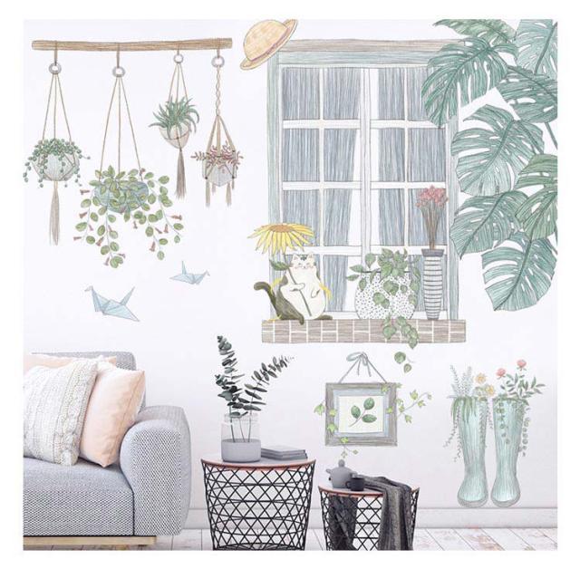 送料無料 ウォールステッカー 植物 木 花 緑 壁飾り ガラスステッカー ウィンドウ 窓 壁紙 飾り ドア DIY 式 ウォールステッカー 壁紙