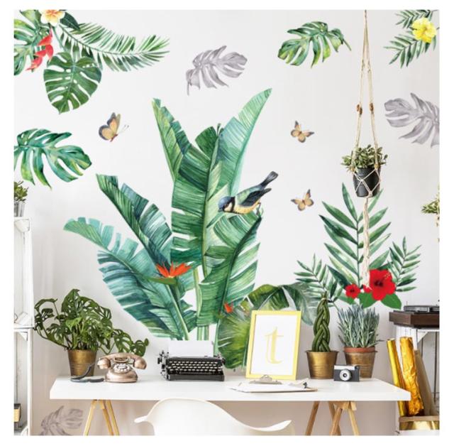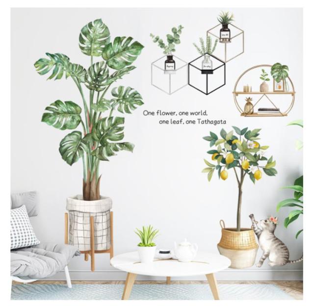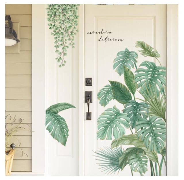 送料無料 ウォールステッカー 植物 壁飾り ガラスステッカー 木 花 緑 ウォール ウィンドウ 窓 壁紙 飾り ドア DIY 式 ウォールステッカー