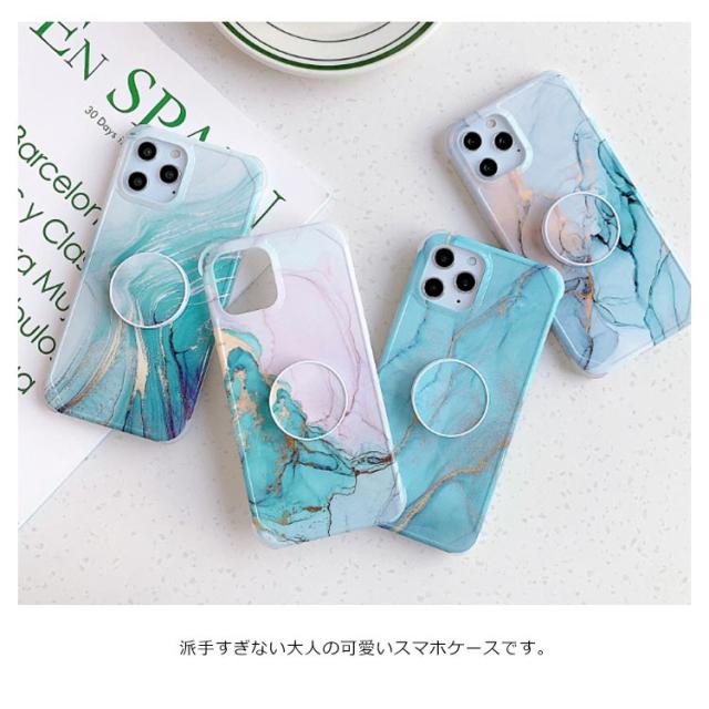 | 派手すぎない大人の可愛いスマホケースです。 個性的な大理石風デザインは落ち着いた色合いがオシャレ。 スタンド機能が付いて、好きな角度で動画鑑賞や読書などを楽しめます。 ケースに装着したままで、充電とイヤホン挿すなど全ての操作が自由に使えます。 本体とピッタリ密着して違和感がない一体感がすごく格好いいです. | |