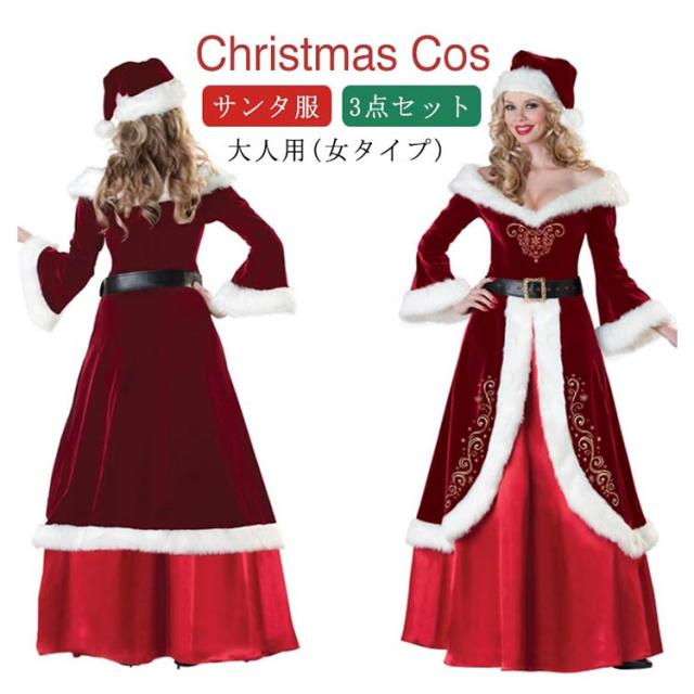 送料無料 サンタ衣装 大人用 3点セット サンタ サンタコス コスプレ コスチューム クリスマス コスチューム クリスマス 衣装 コスプレ 仮装 サンタ コスプレ コス サンタ服 パーティー