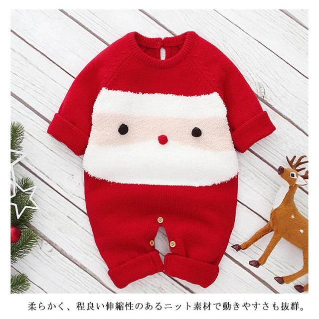 送料無料 サンタさん クリスマス服 カバーオール 秋冬 ニット素材 ベビー服 ロンパース クリスマス コスプレ コスチューム 仮装 キッズ 子供 出産祝い 誕生日 ボディスーツ