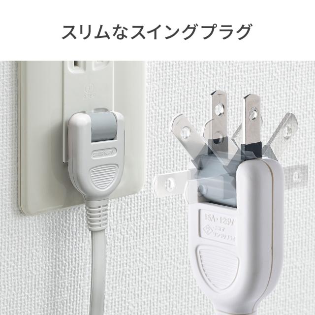 ●コンセントに差したときに出っ張りが少ないスイングプラグを採用しています。