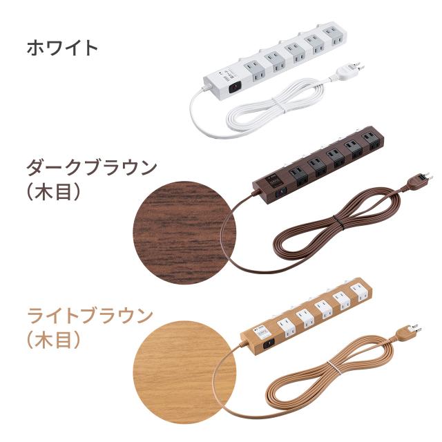 電源タップ マグネット付 10個口 個別スイッチ付 一括集中スイッチ付 3m 雷ガード ダークブラウン ライトブラウン木目[700-TAP051-3]