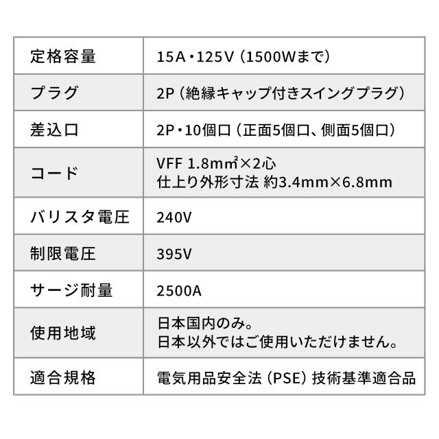 ■差込口:2P・10個口(正面5個口、側面5個口)