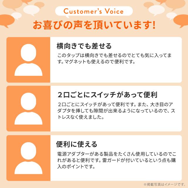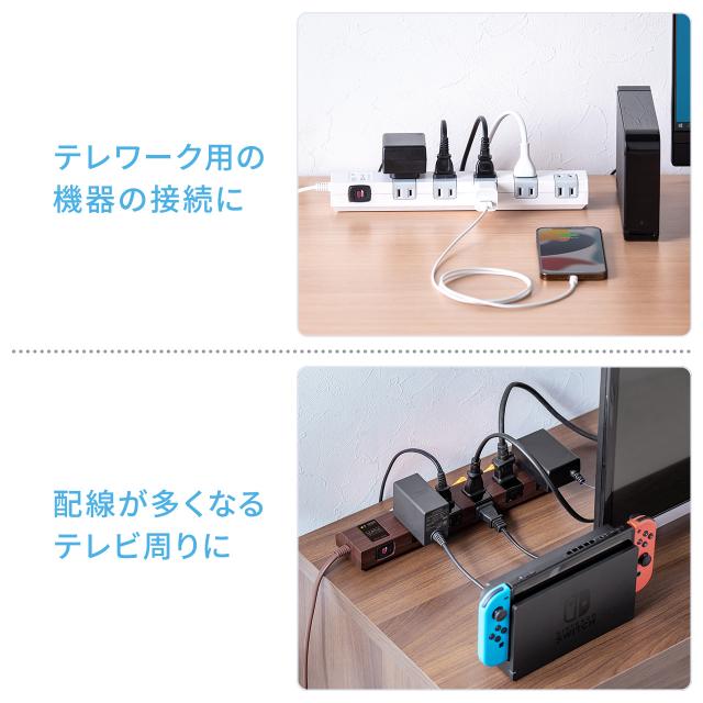 ●小型ACアダプタの差し込みが可能な10個口の電源タップです。●差込口ピッチが45mmなので、iPadなどのタブレット用の大きめのACアダプタ(USB充電器)の接続時に差し込みやすいです。