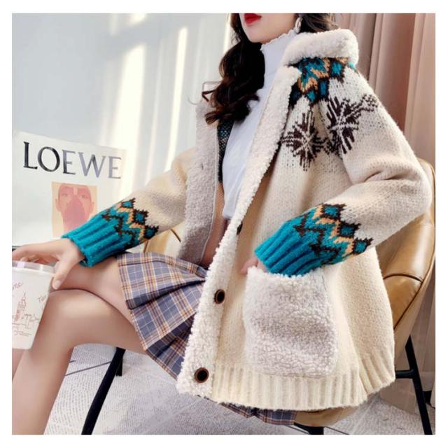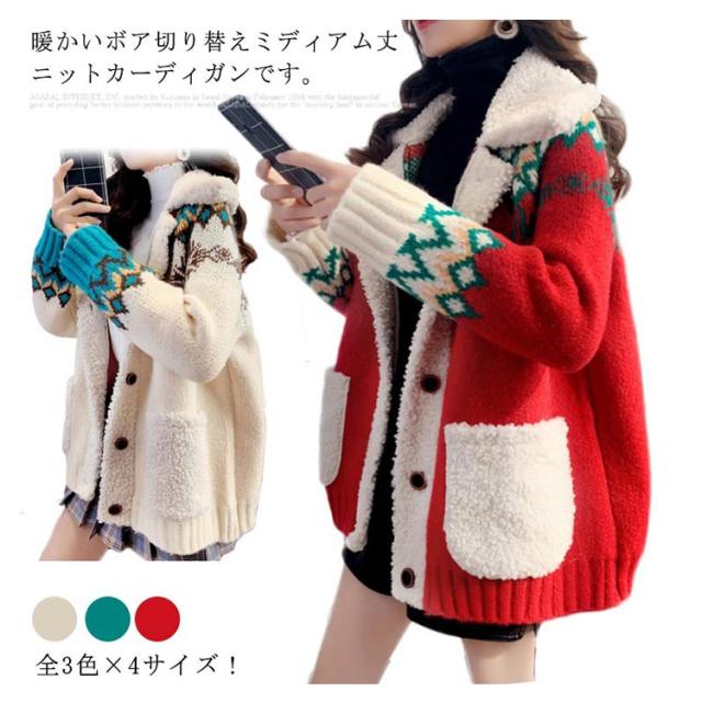 全3色*4サイズ!ボア切り替えカーディガン レディース カーディガン ニットカーディガン 秋冬 秋 冬 ニットコート 厚手 ボア 暖かい ポケット付き ゆったり 可愛い