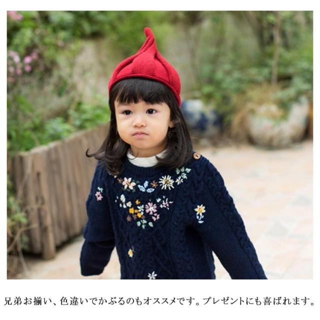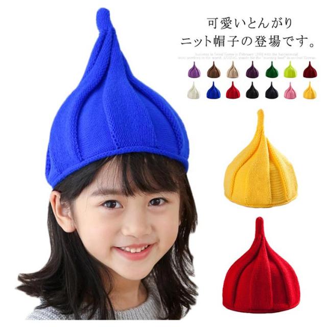 送料無料 とんがり ニットキャップ ニット帽 とんがり帽子 子供用 ニット帽子 ニット キャップ 帽子 とんがり フリーサイズ キッズ帽子 ベビー キッズ 子ども シンプル 無地 防寒 秋 冬