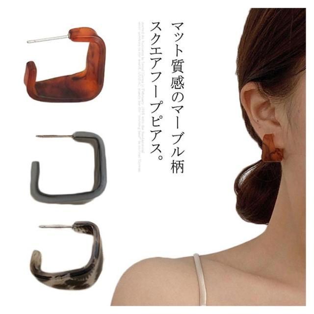 スクエアフープピアス 送料無料 マーブル ピアス フープピアス スクエア ヒョウ柄 おしゃれ カジュアル 大人 おしゃれ 女性 アクセサリー ファッション 雑貨