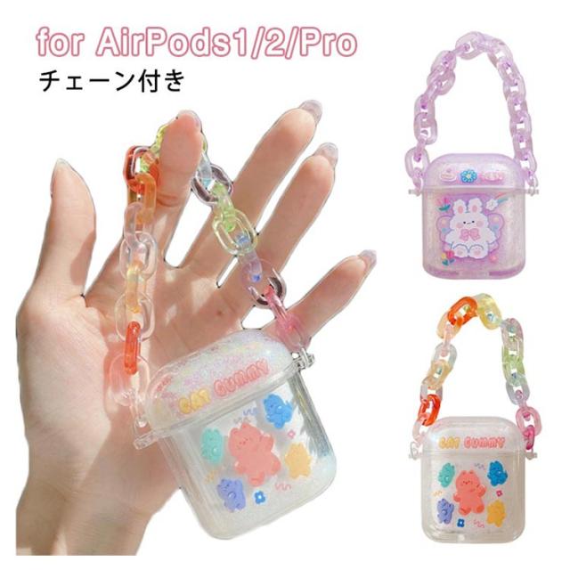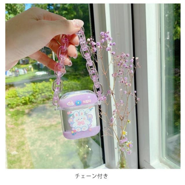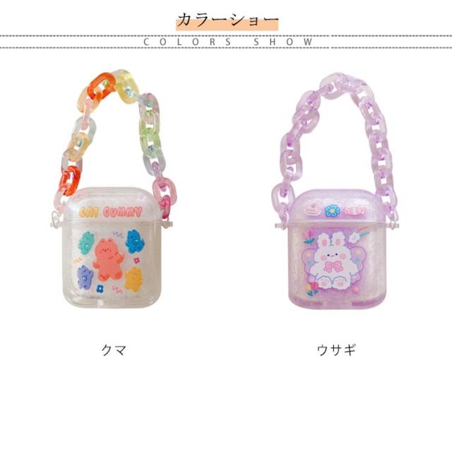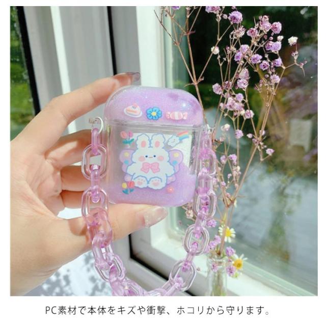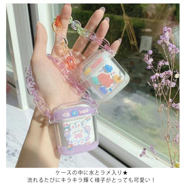 送料無料 クリアケース キラキラ 流れる ラメ AirPods ケース カバー かわいい ストラップ付き ウサギ クマ キラキラ グリッター ラメ AirPodsPro AirPods1 AirPods2 ハードケース エアーポッズ カバー アップル イヤホン 収納ケース 保護カバー イヤホンケース 保護収納