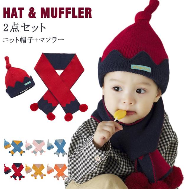 子供 ニット帽 ニット帽子+マフラー 2点セット 女の子 男の子 ニット帽子 赤ちゃん 帽子 防寒 帽子 ニット マフラー ストール ベビー 帽子 ニット 帽子 子供 キッズ ニットキャップ キッズ帽子 冬物 出産祝い プレゼント 誕生日 幼稚園 お散歩 送料無料