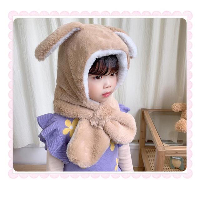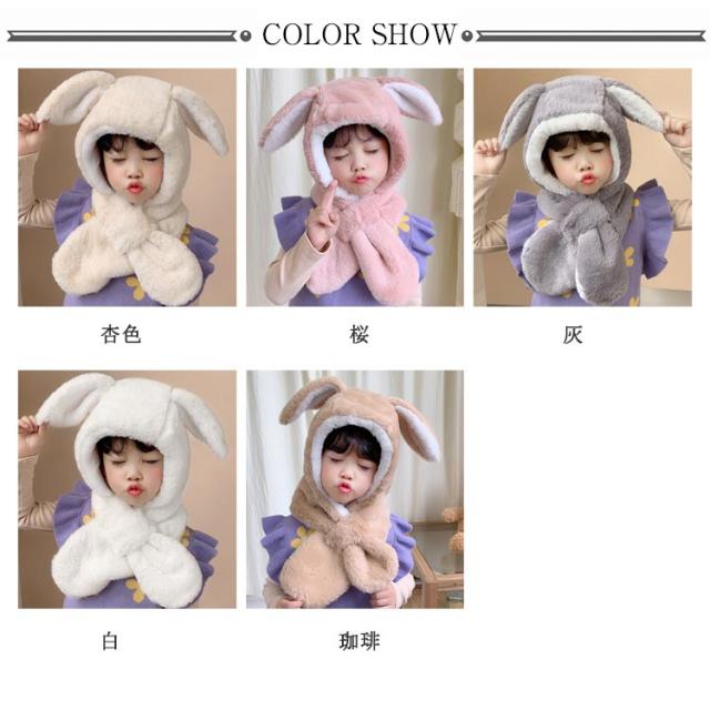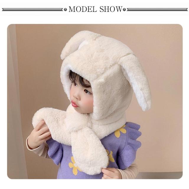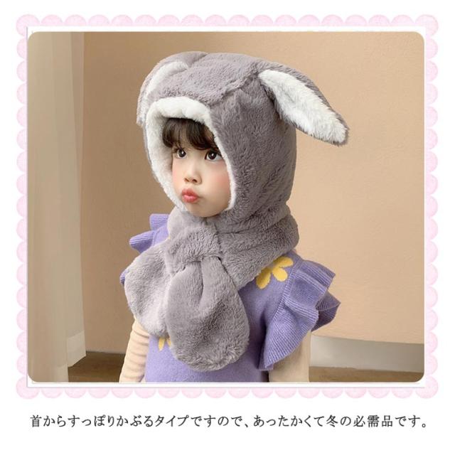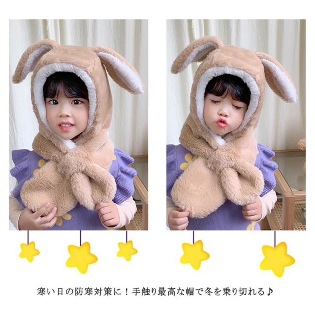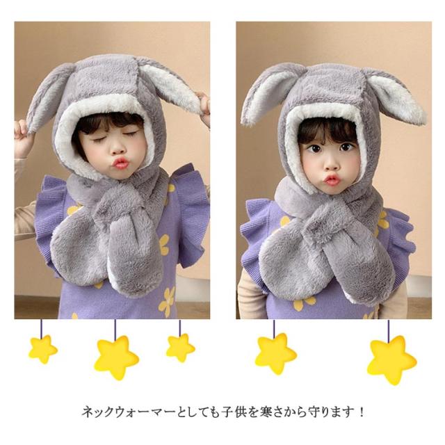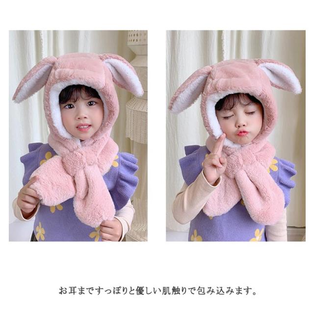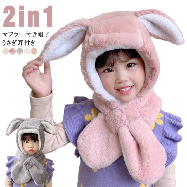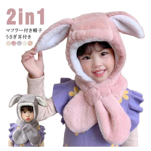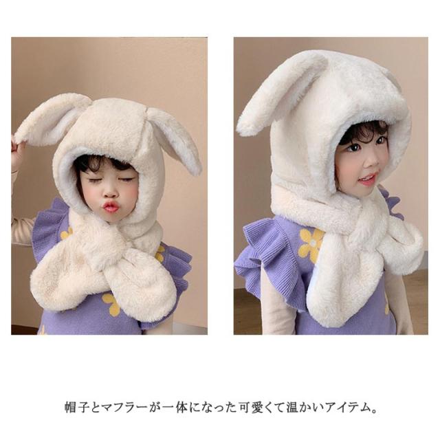 うさぎ耳付き 帽子 マフラー付き 帽子 フェイクファー もこもこ 子供 帽子 ボア 帽子 スヌード付き 帽子 ボア ベビー キッズ 赤ちゃん 帽子 ネックウォーマー マフラー 防寒 アウトドア 幼稚園 お散歩 送料無料