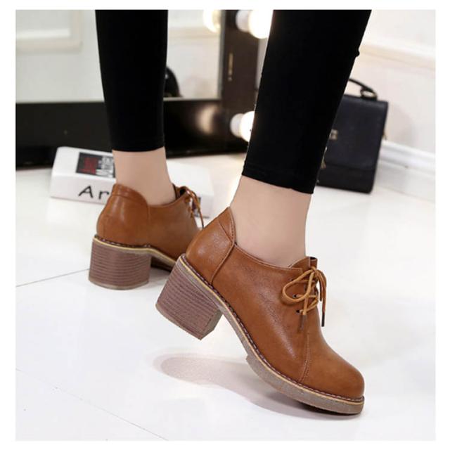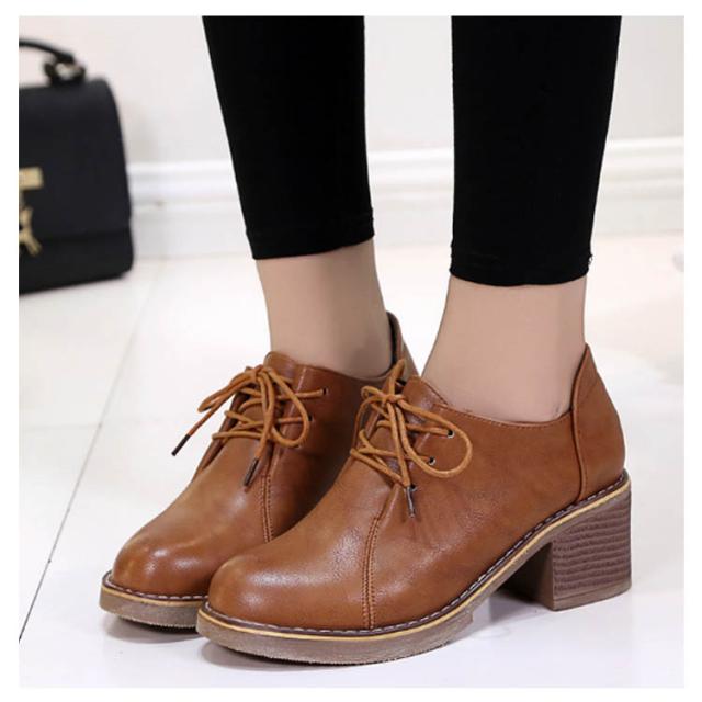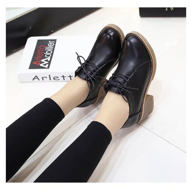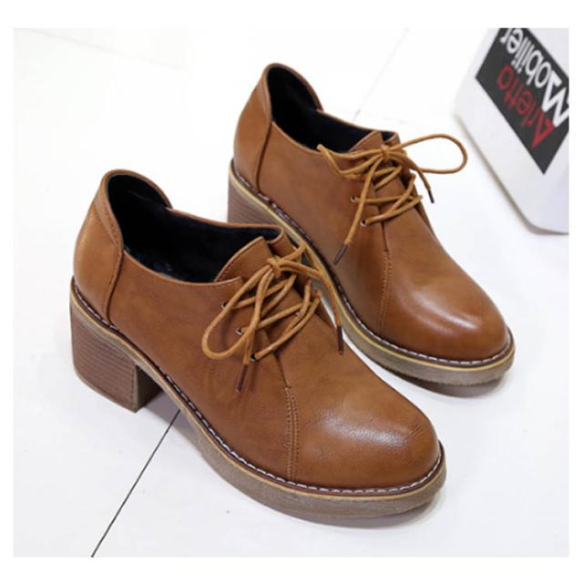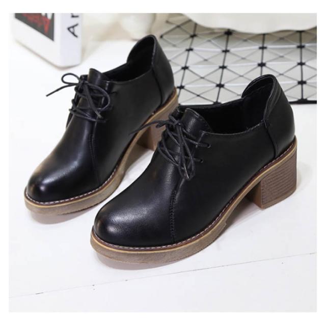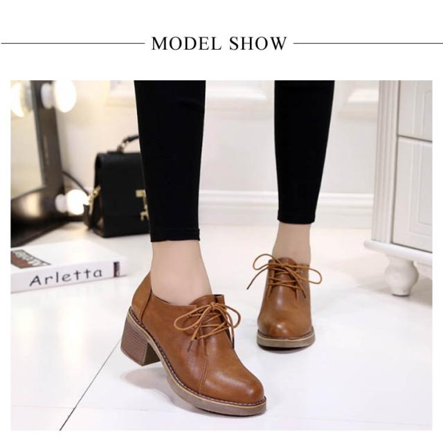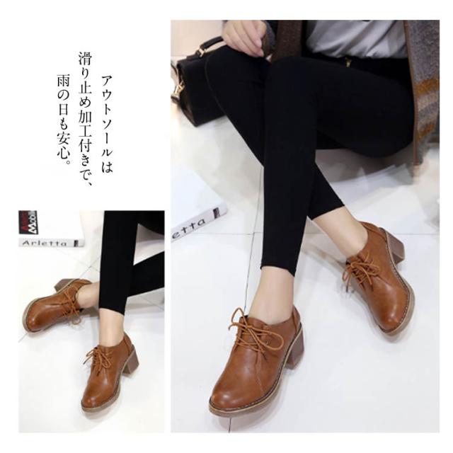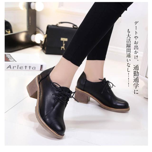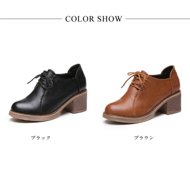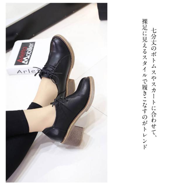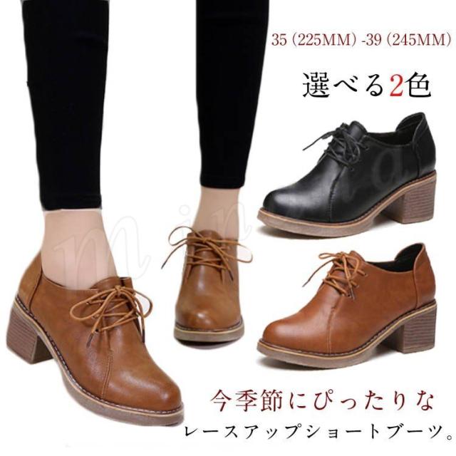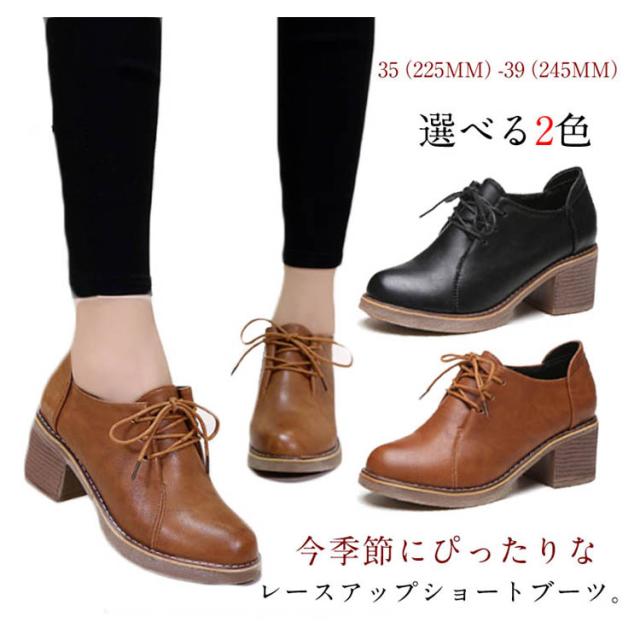 ショートブーツ レースアップシューズ チャンキーヒール レディース