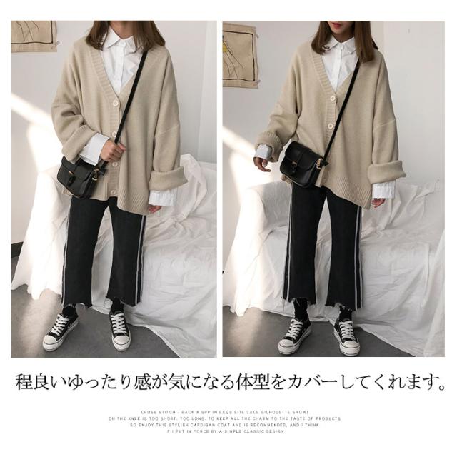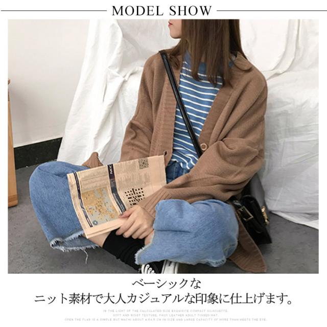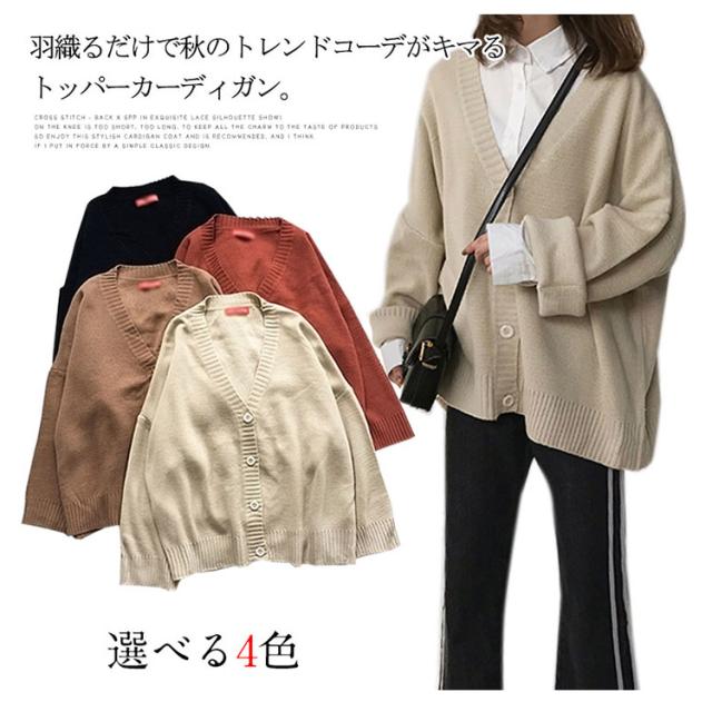 ニット カーディガン ゆったり トッパーカーデ ミディアム丈 vネック ボダン付き キレイめ アウター 羽織り レディース お洒落 長袖 厚手 アウトドア 秋