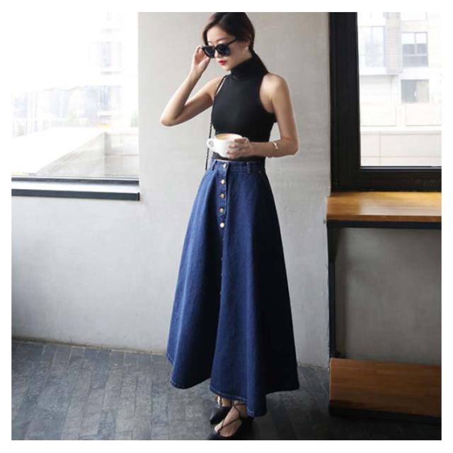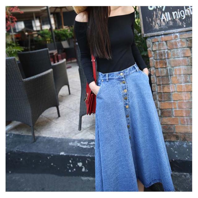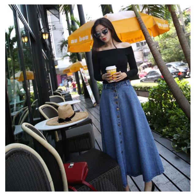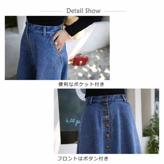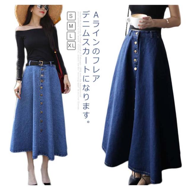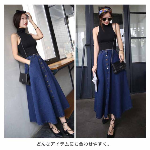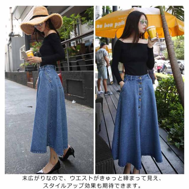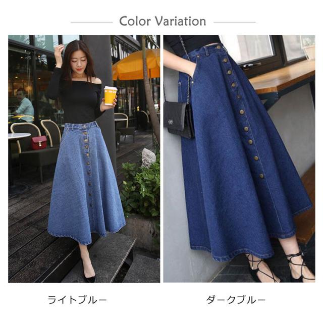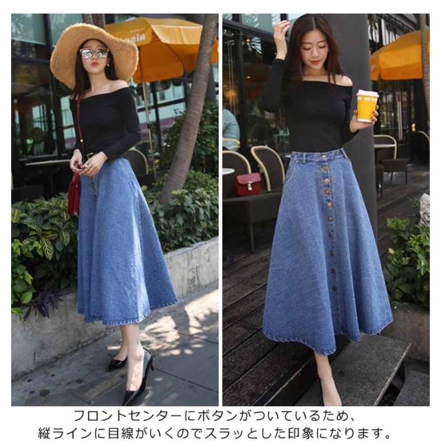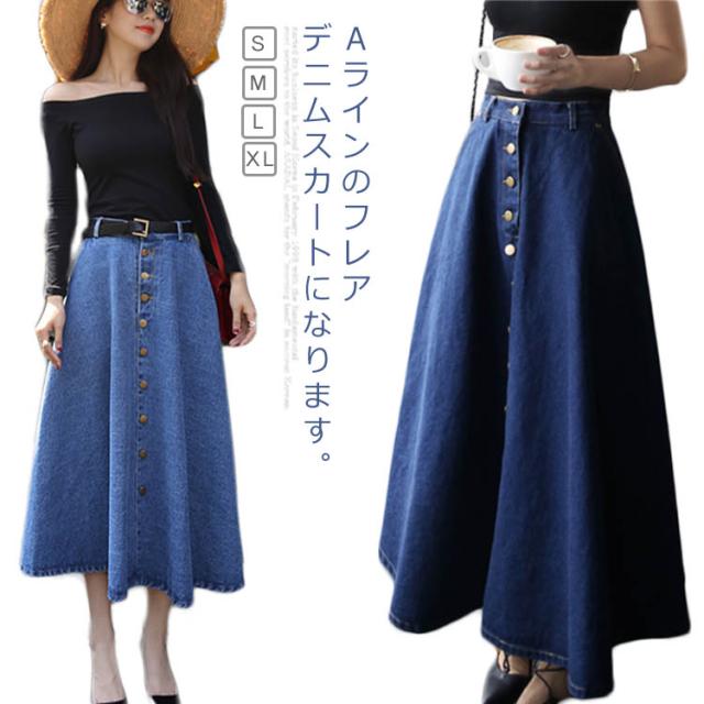 デニムスカート Aラインスカート フレアスカート フロントボタン ハイウエスト 無地 大きいサイズ フェミニン エレハント 通勤 通学 レディースファッション 新作