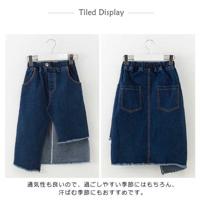子供服 デニムスカート 膝丈 女の子 ヘムラインスカート Aラインスカート デニム ゆったり 可愛い ハイウエスト おしゃれ 通園 カジュアル 新作 120 130 140 150 160